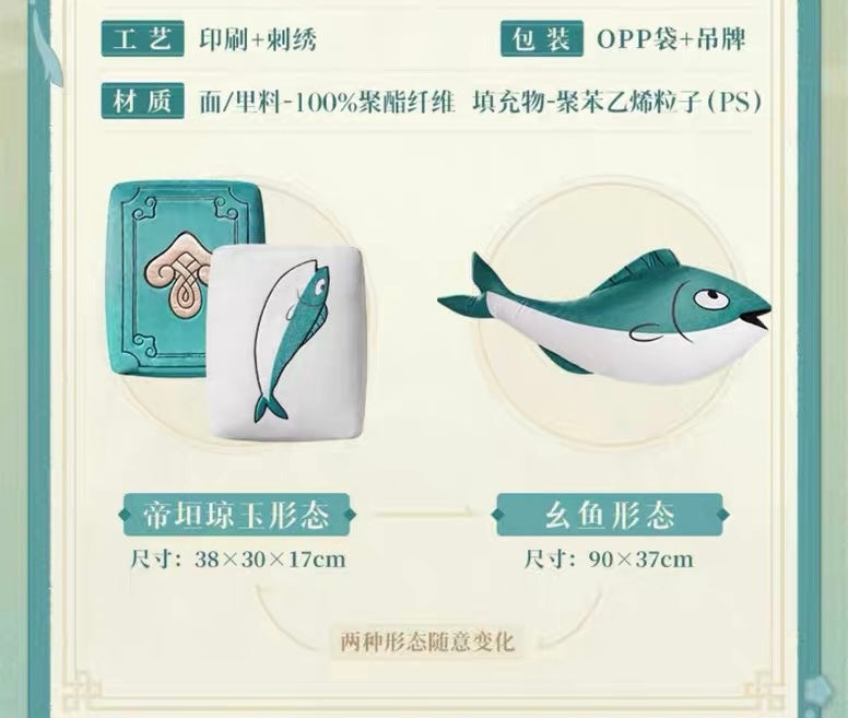 - Can turn into a fish plush or rectangular pillow